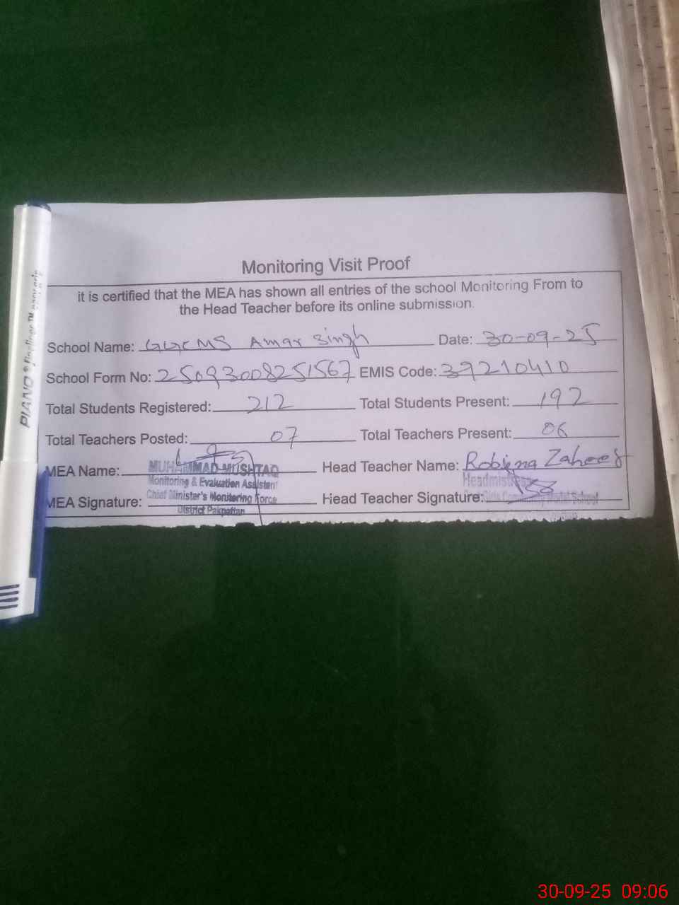 | EMIS Code: 39210410 | Name of School: GGCMS AMAR SINGH | |||