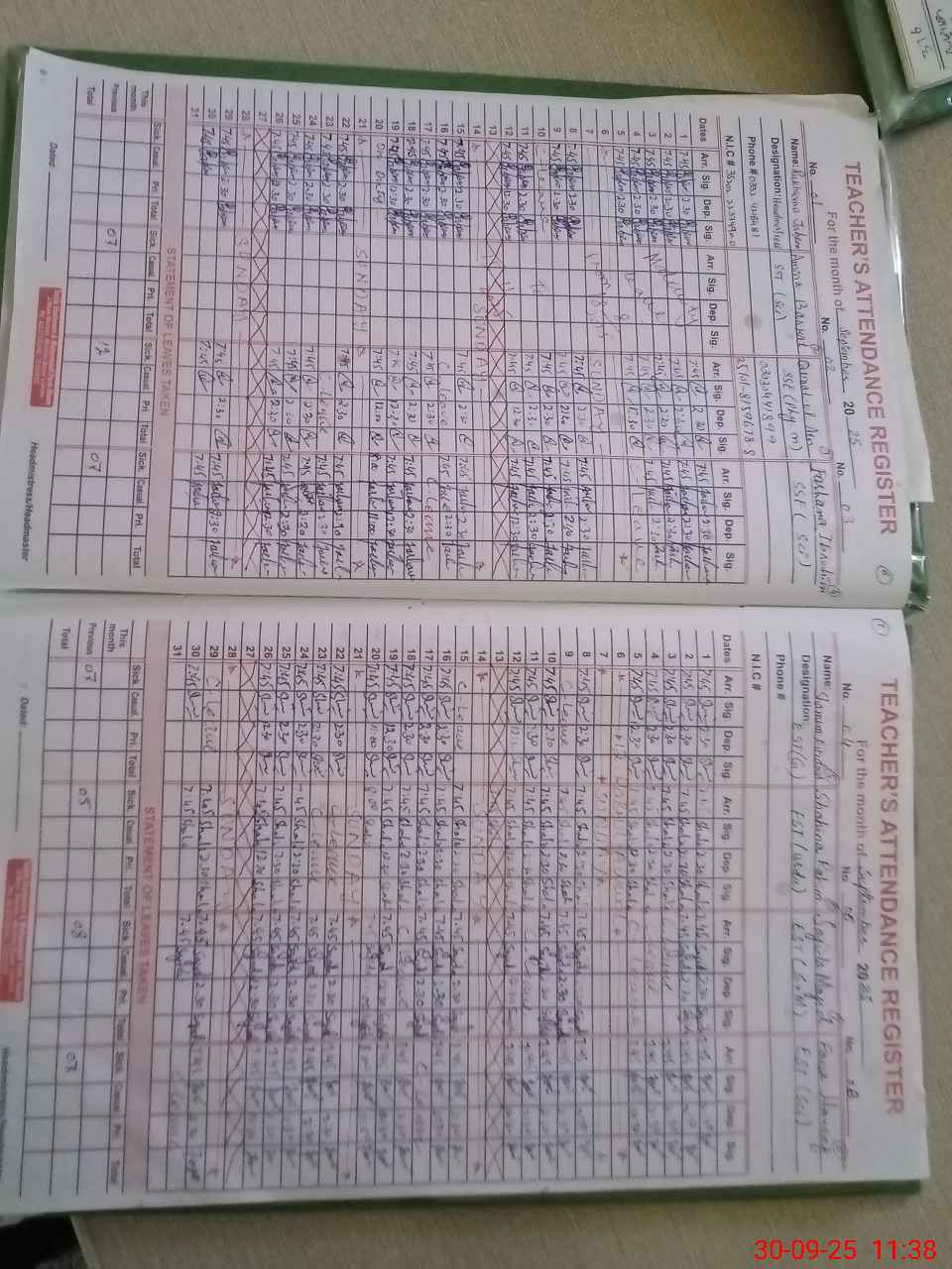 | CNIC | Full Name | Designation | R/C | Absence During Last Calender Month |