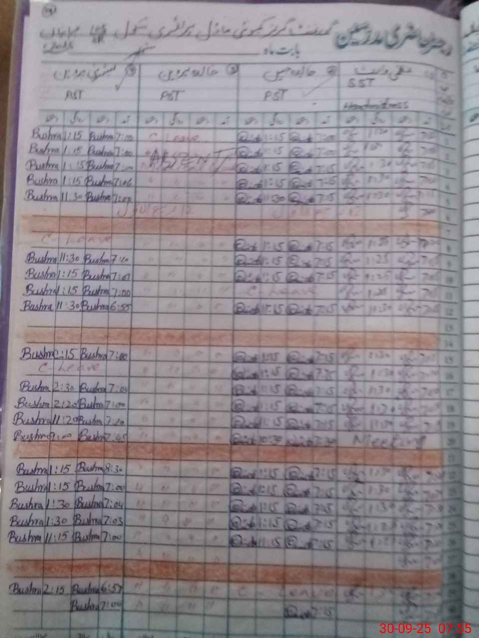 | Name: UZ**** WA**** Designation: (School Headmaster's/Headmistress's) S.S.T.(G) Phone/Cell Number: 03**** |