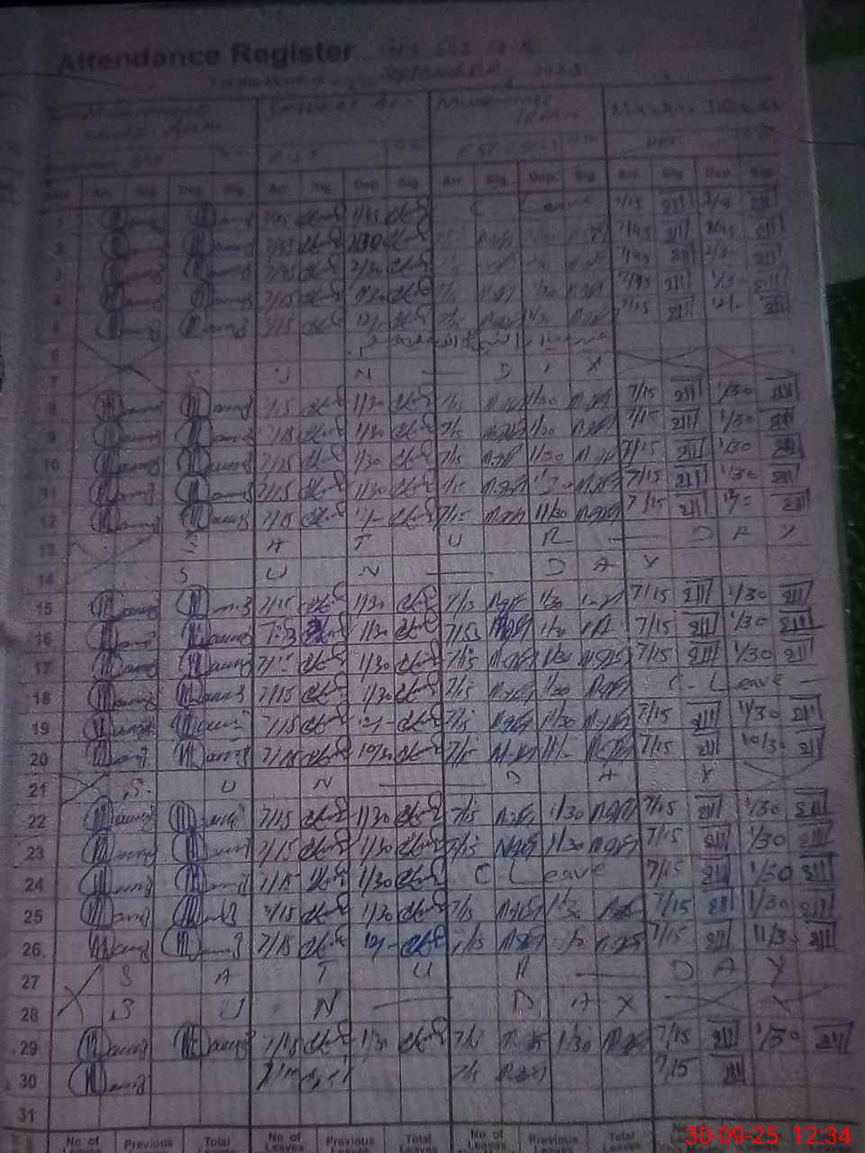 | CNIC | Full Name | Designation | R/C | Absence during last cal. month |