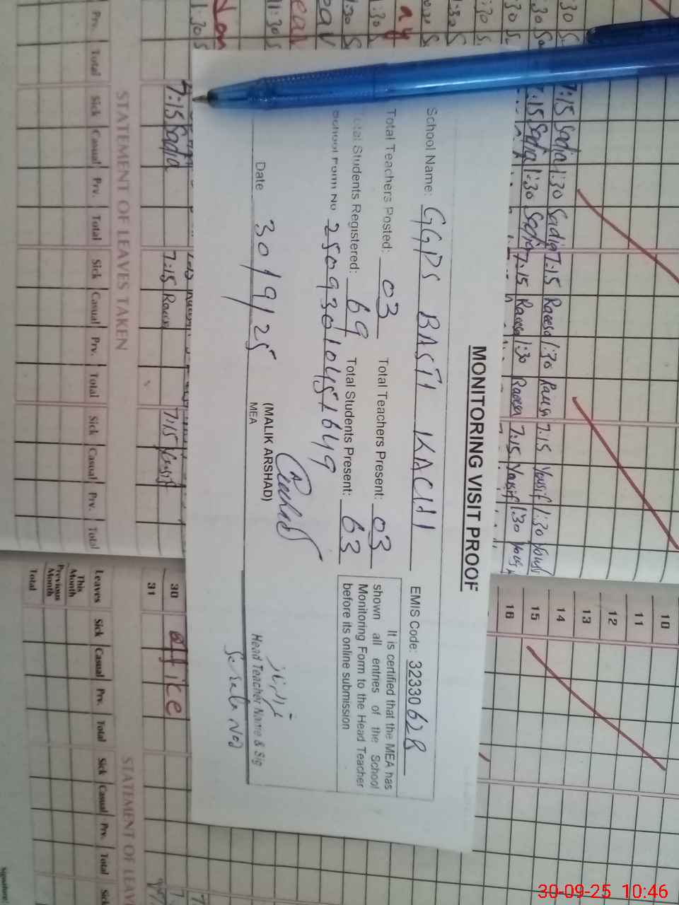 | EMIS Code: 32330628 | Name of School: GGPS BASTI KACHI | |||