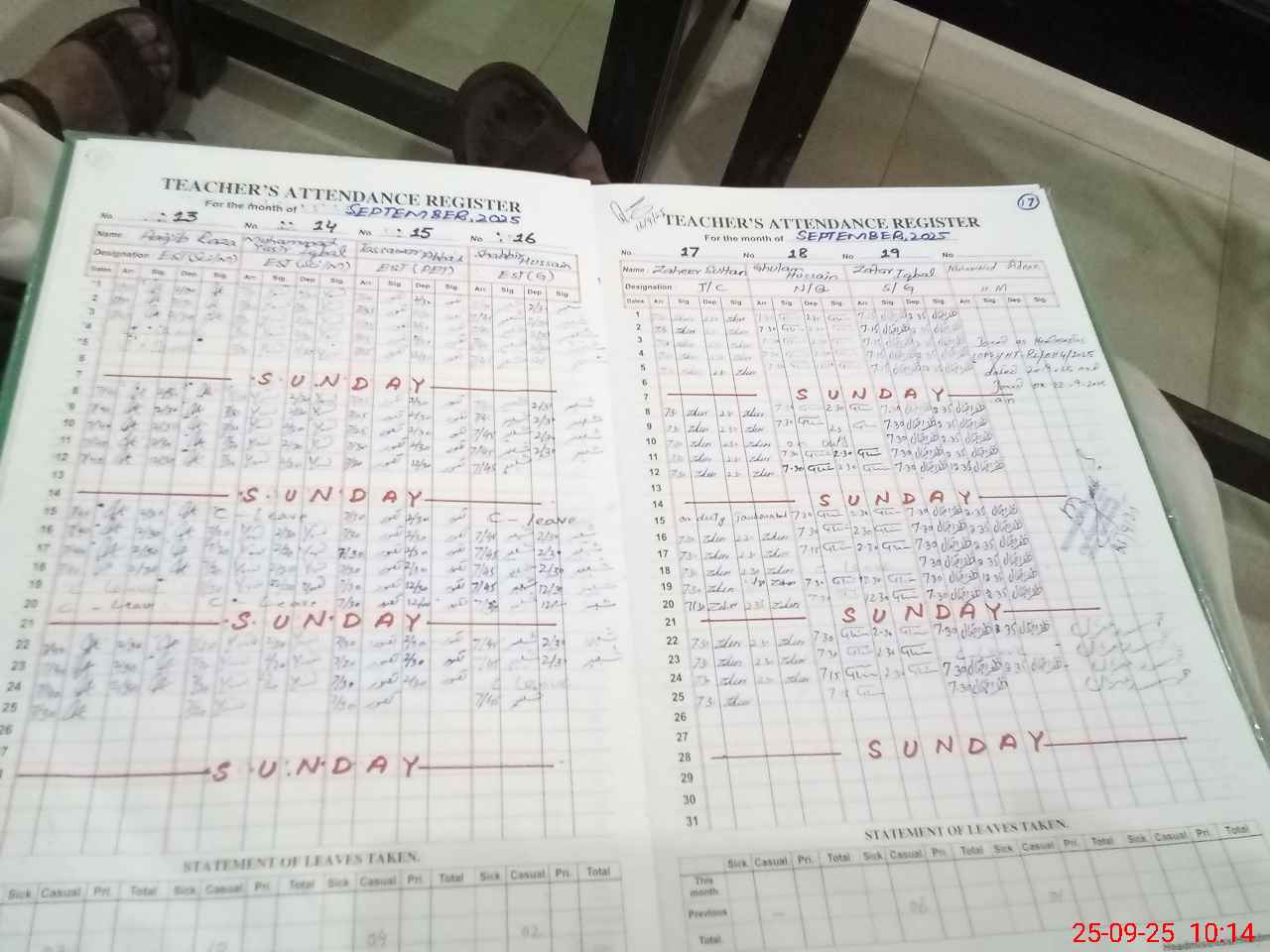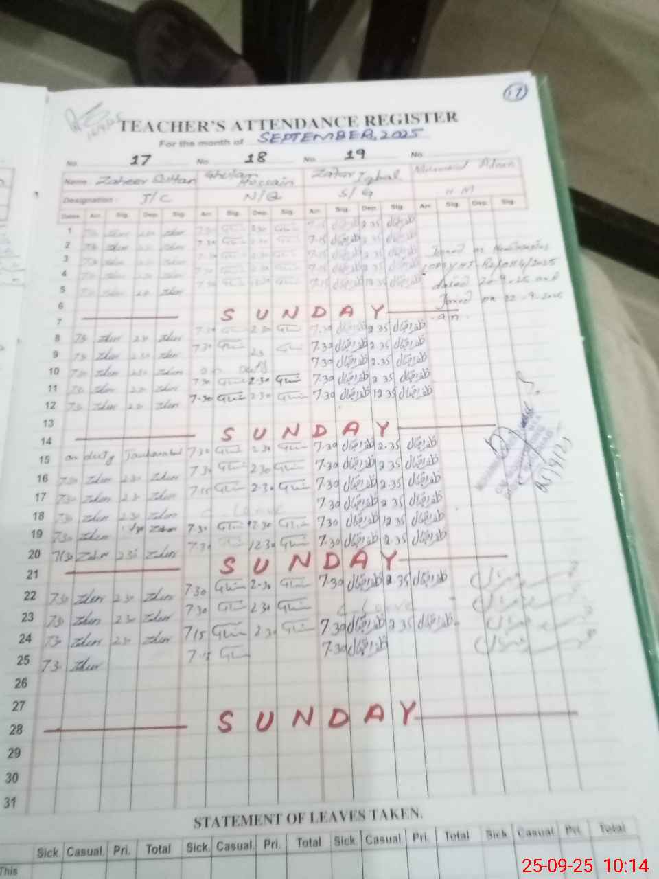 | CNIC | Full Name | Designation | R/C | Absence During Last Calender Month |