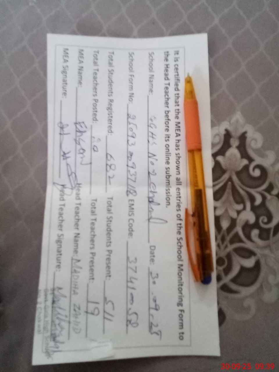 | EMIS Code: 37410058 | Name of School: GGHS NO. 2 CHAKWAL | |||