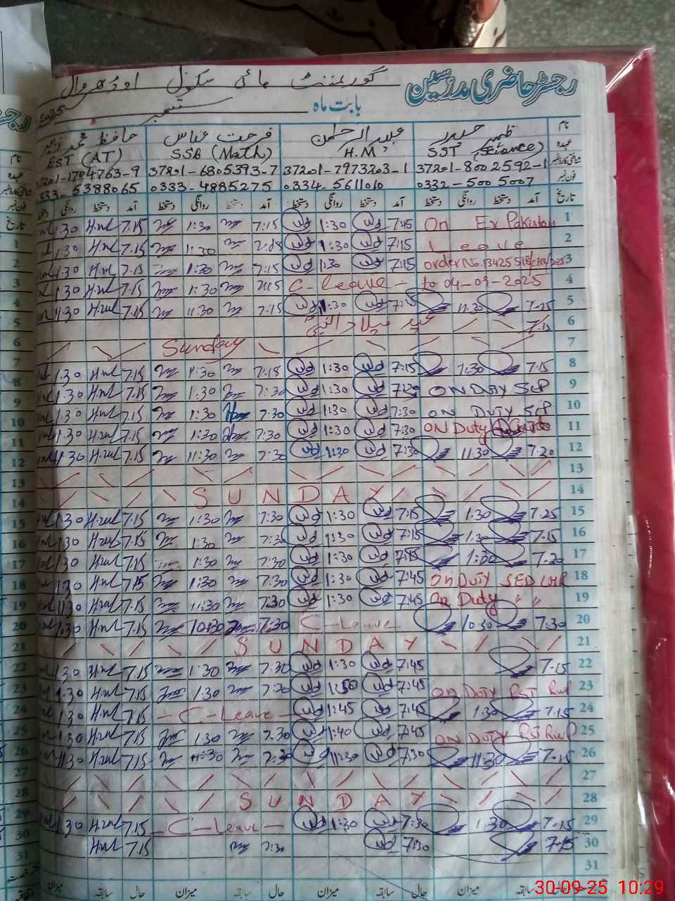 | CNIC | Full Name | Designation | R/C | Absence During Last Calender Month |
