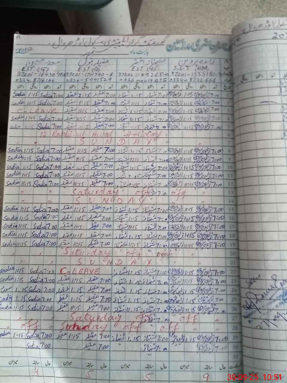 | Name: Za**** Pa**** Designation: (School Headmaster's/Headmistress's) Headmistress Phone/Cell Number: 03**** |
