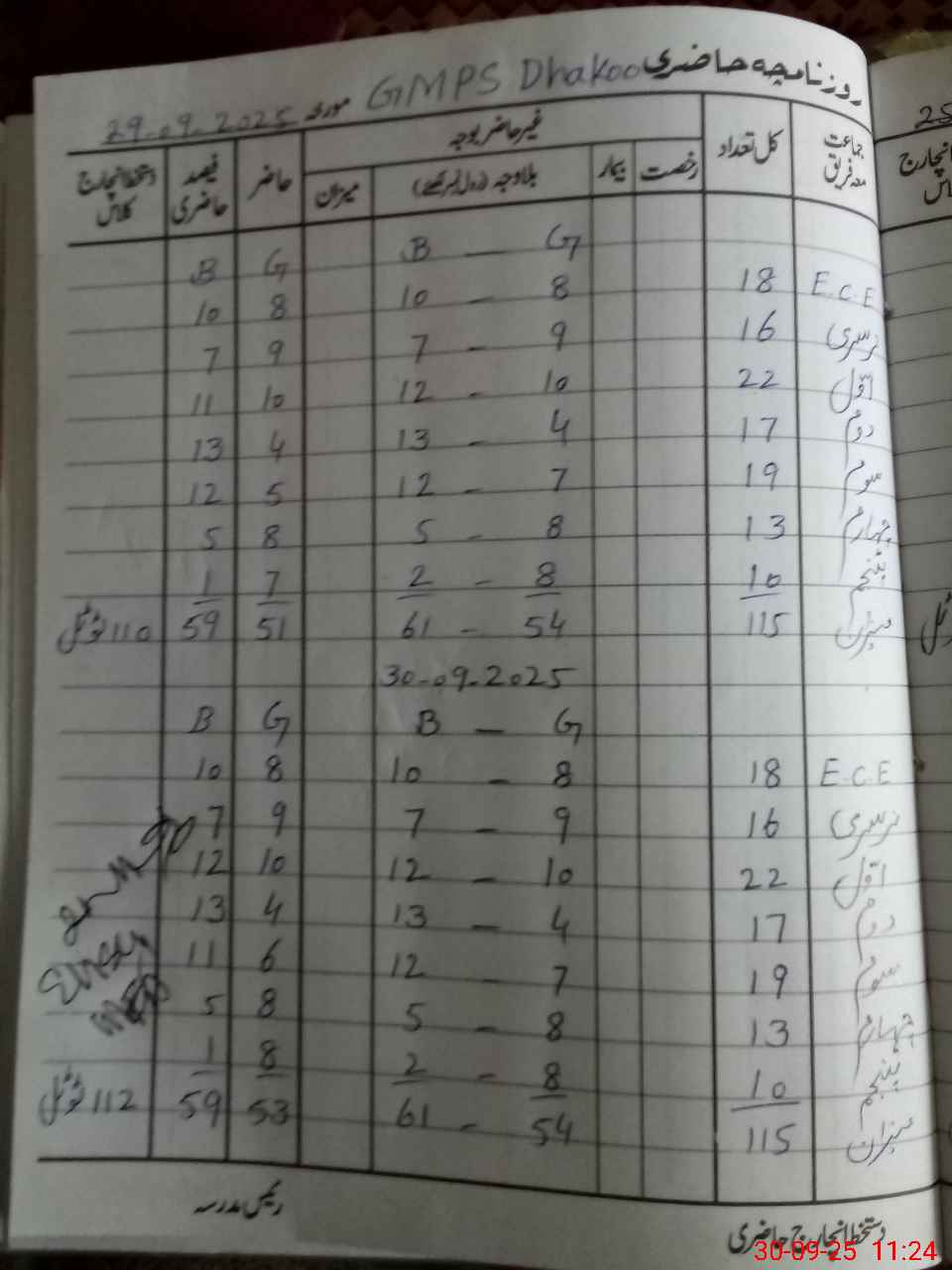 | Total Students Present | 18 | 0 | 16 | 22 | 17 | 17 | 13 | 9 | 112 | |||||||