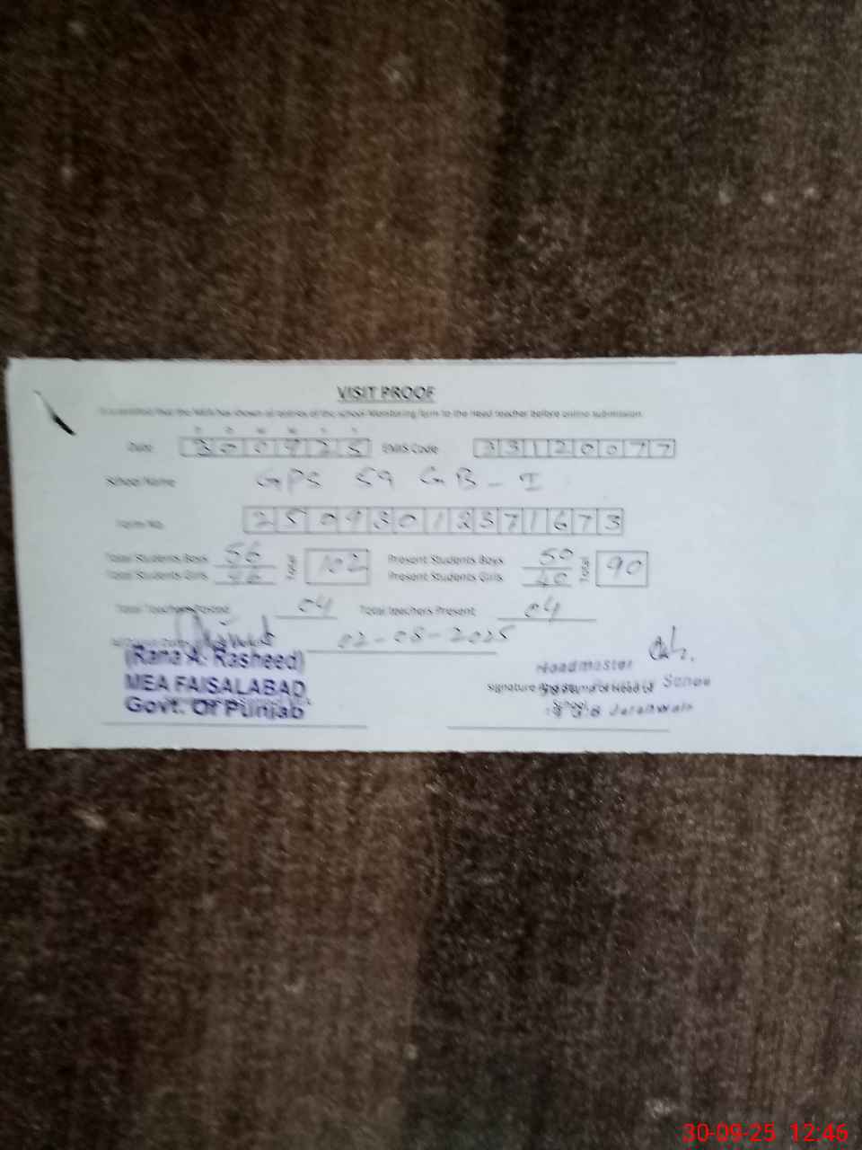 | EMIS Code: 33120077 | Name of School: GPS CHAK 59 GB I | |||