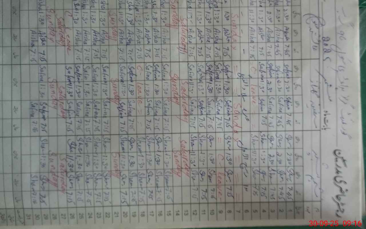 | CNIC | Full Name | Designation | R/C | Absence During Last Calender Month |