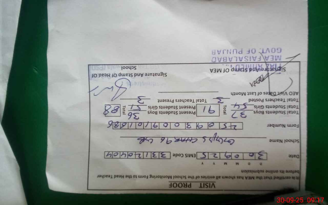 | Attendance Register | Head Teacher | MEA with School | Visit Proof |