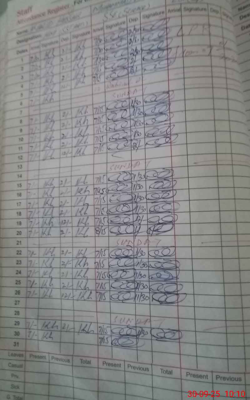 | CNIC | Full Name | Designation | R/C | Absence During Last Calender Month |