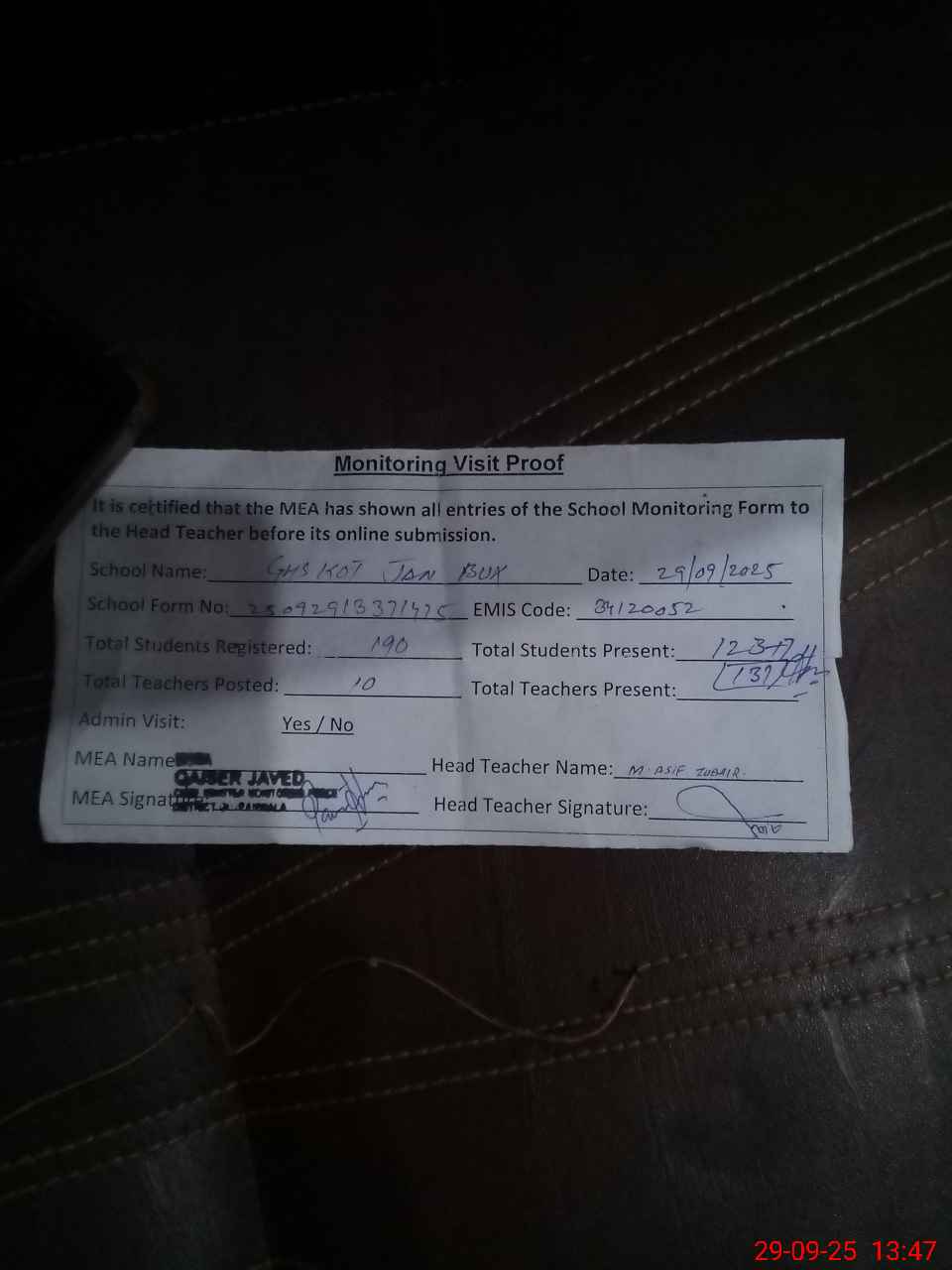 | EMIS Code: 34120052 | Name of School: GHS KOT JAN BUX | |||
