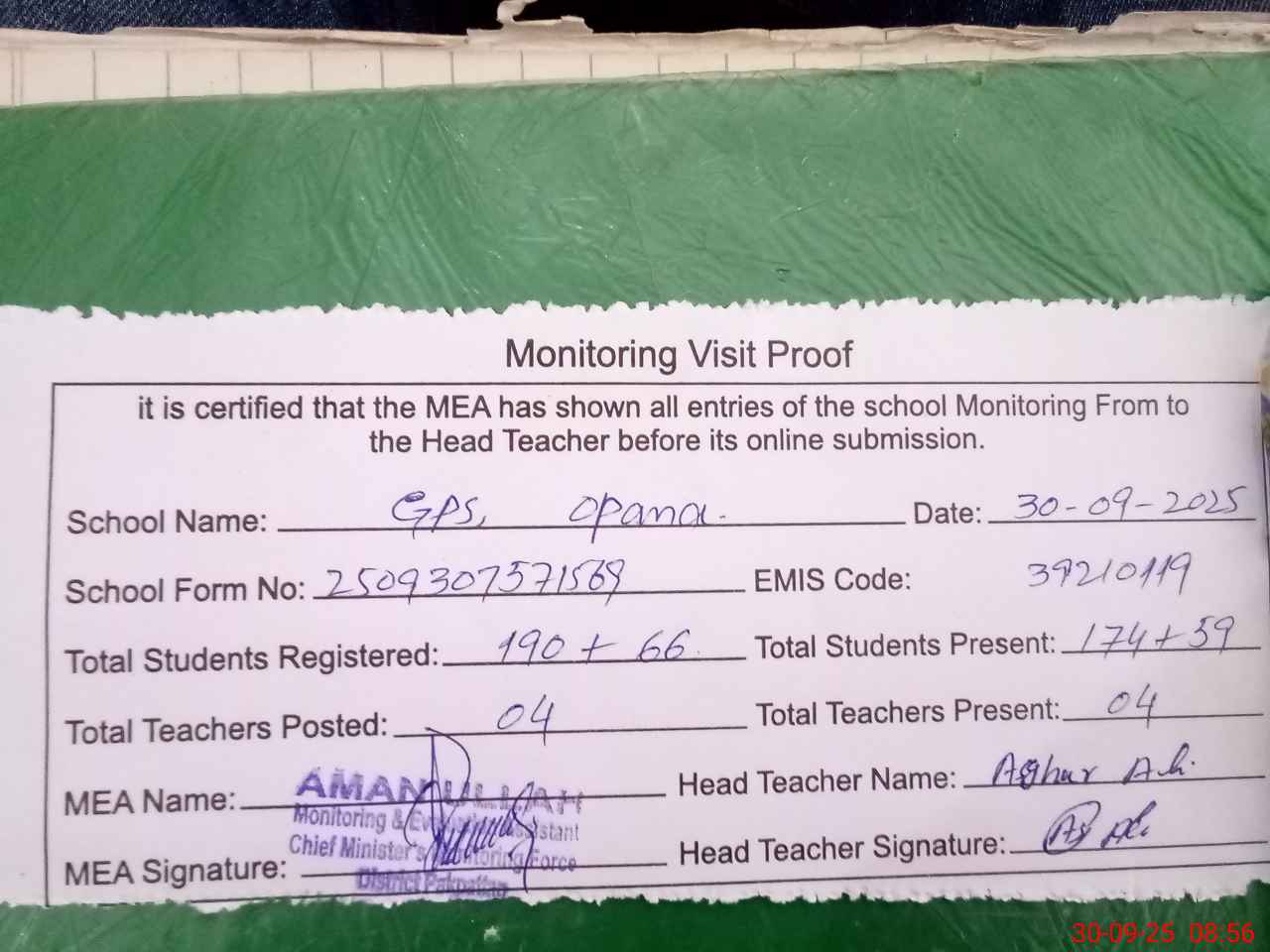 | EMIS Code: 39210119 | Name of School: GPS OPANA | |||