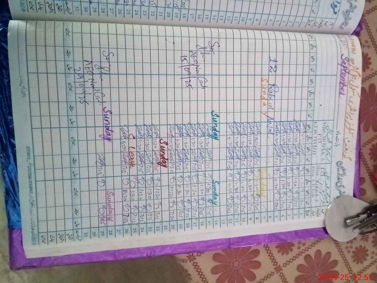 | CNIC | Full Name | Designation | R/C | Absence During Last Calender Month |