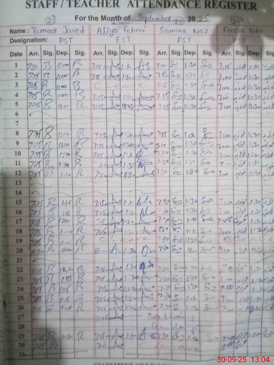 | 37**** | Sa**** Na**** | PST | Regular | 0 | 0 | 0 | 0 | 0 | 0 | 0 | 0 | 0 | Casual |