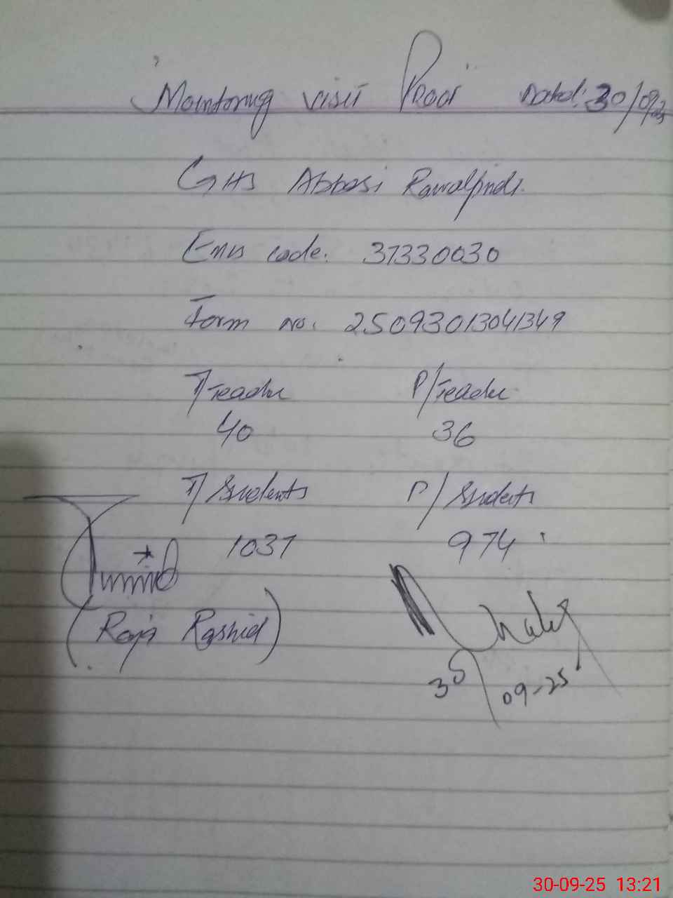 | EMIS Code: 37330030 | Name of School: GHS ABBASI RAWALPINDI | |||