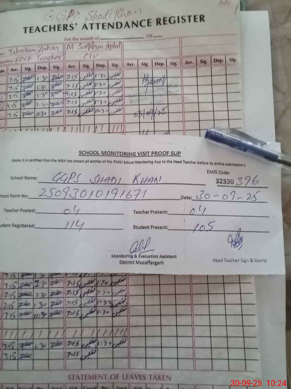 | EMIS Code: 32330396 | Name of School: GGPS SHADI KHAN | |||