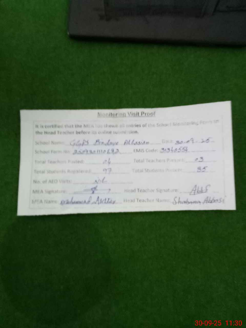 | EMIS Code: 31340554 | Name of School: GGPS BINDORE ABBASIAN | |||