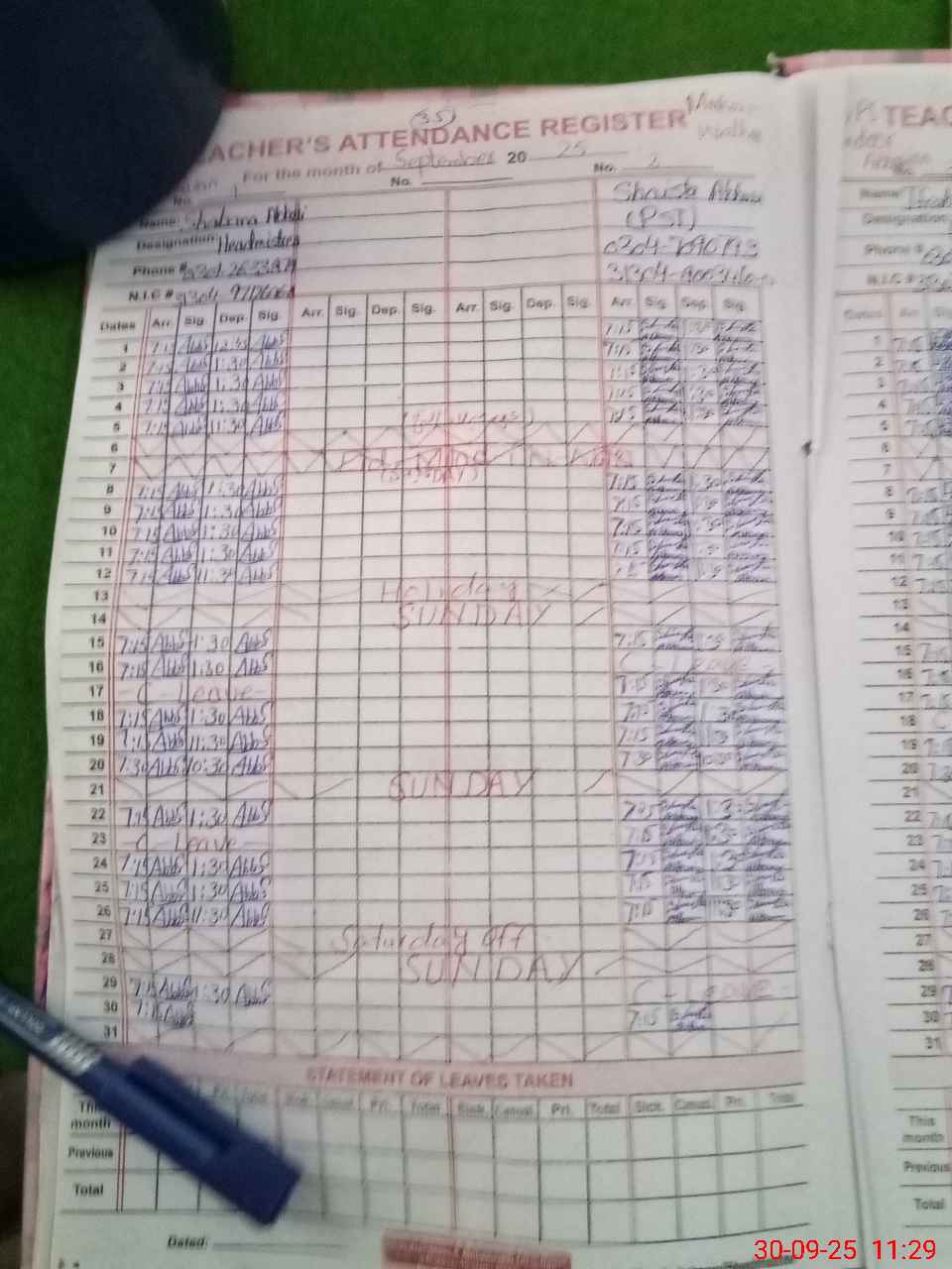 | Name: Sh**** Ab**** Designation: (School Headmaster's/Headmistress's) PST Phone/Cell Number: 03**** |