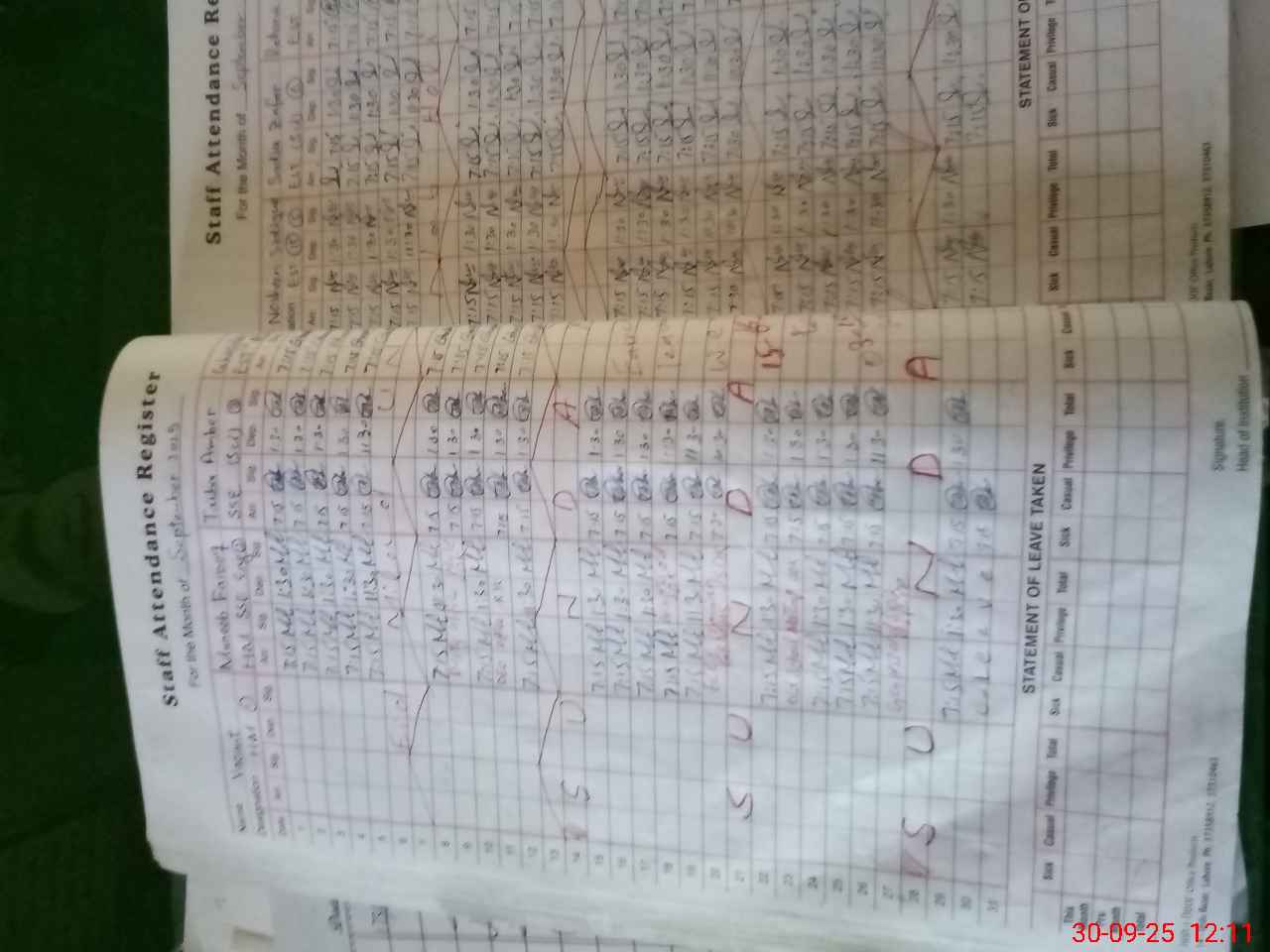 | CNIC | Full Name | Designation | R/C | Absence During Last Calender Month |