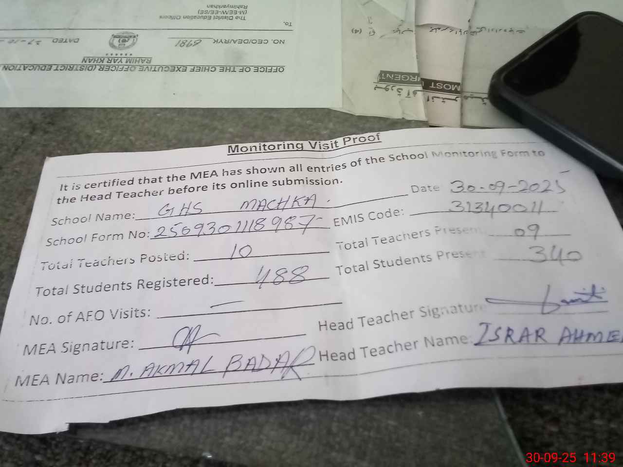 | Certified that this School was Inspected by the Undersigned MEA/DMO Today and the Information Stated Above is as Per Record. | |||||