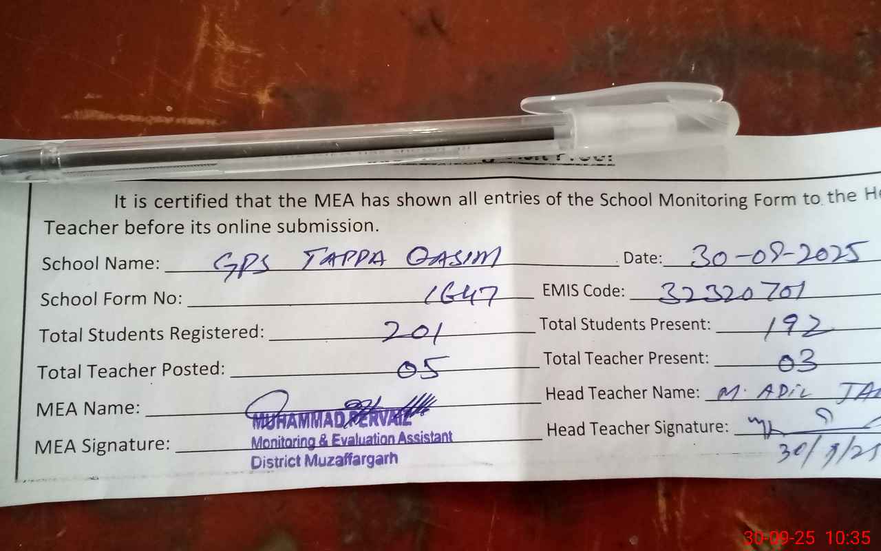 | EMIS Code: 32320701 | Name of School: GPS TAPPA QASIM | |||