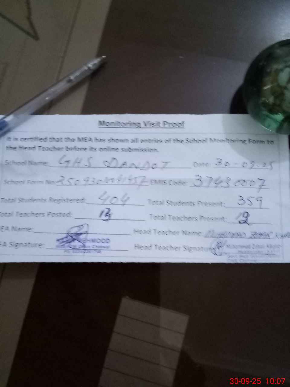 | EMIS Code: 37430007 | Name of School: GHS DANDOOT | |||