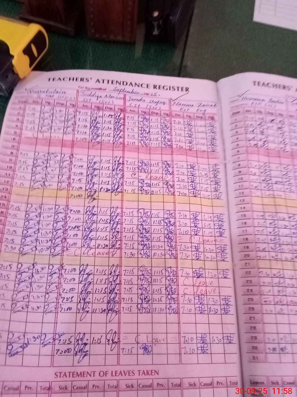 | Leave | Duty | Absent | Maternity | Medical | Ex- Pak |