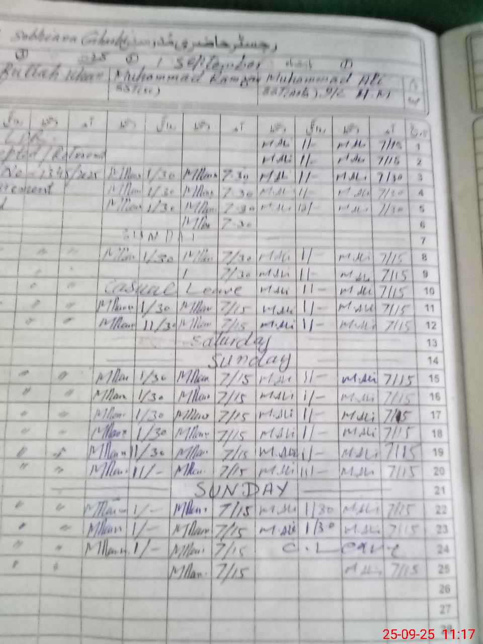 | CNIC | Full Name | Designation | R/C | Absence During Last Calender Month |