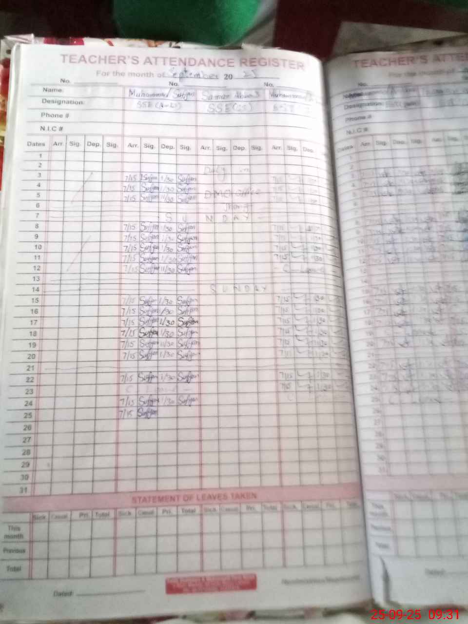 | 33**** | Sh**** Ah**** | LA | 0 | 0 | 0 | 0 | 0 | 0 | 0 | 0 | 0 | Absent (Un-Authorized) | |