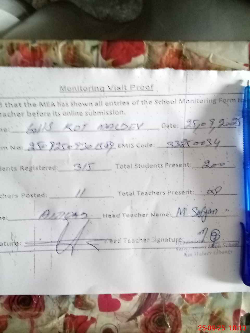 | EMIS Code: 33250034 | Name of School: GHS KOT MALDEV | |||