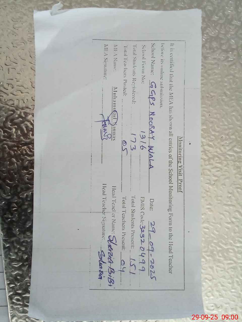 | EMIS Code: 32320499 | Name of School: GGPS NOORAY WALA | |||