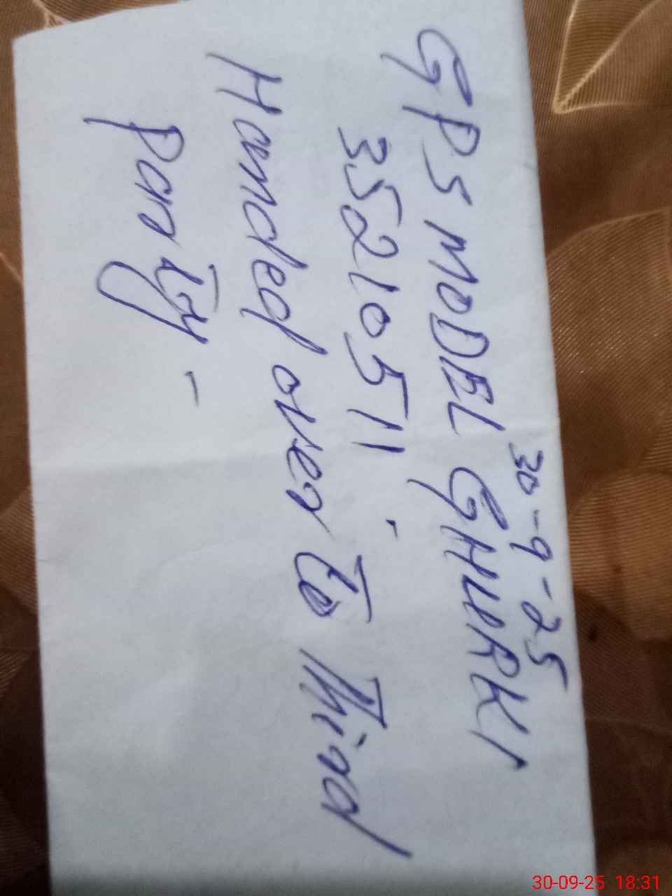 | Remarks (Use Separate Page if Required): GPS Model Ghurki Emis Code 35210511 Handed over to third party | |||||
