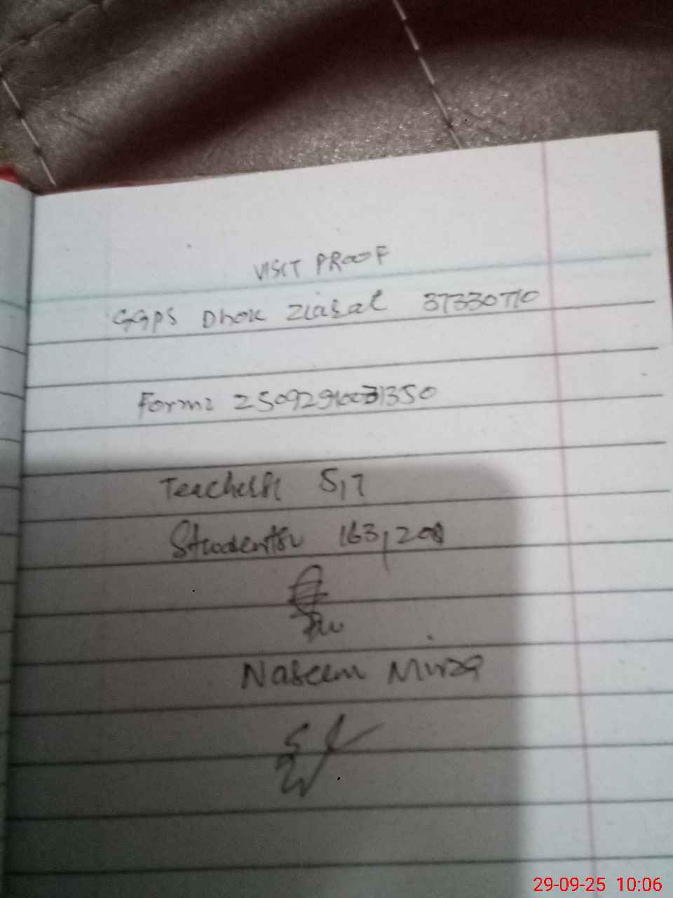 | Attendance Register | Head Teacher | MEA with School | Visit Proof |