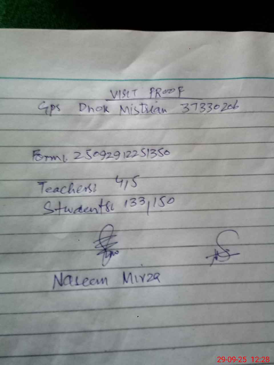 | Attendance Register | Head Teacher | MEA with School | Visit Proof |