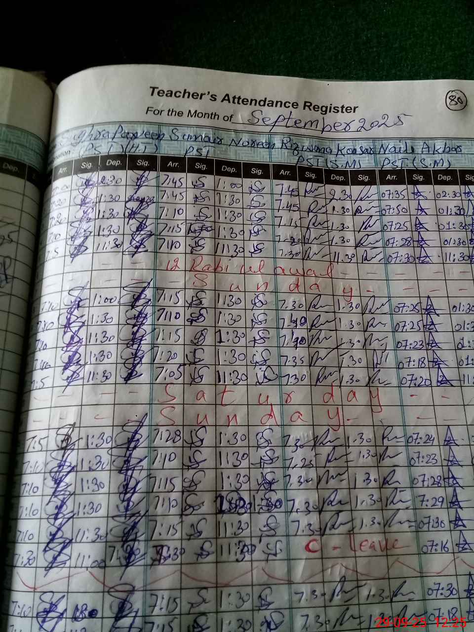 | CNIC | Full Name | Designation | R/C | Absence During Last Calender Month |