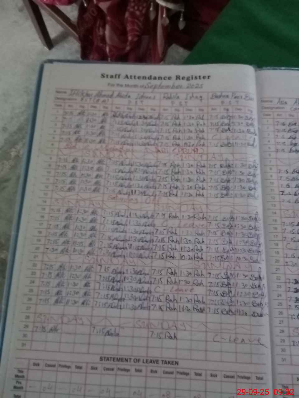 | Leave | Duty | Absent | Maternity | Medical | Ex- Pak |