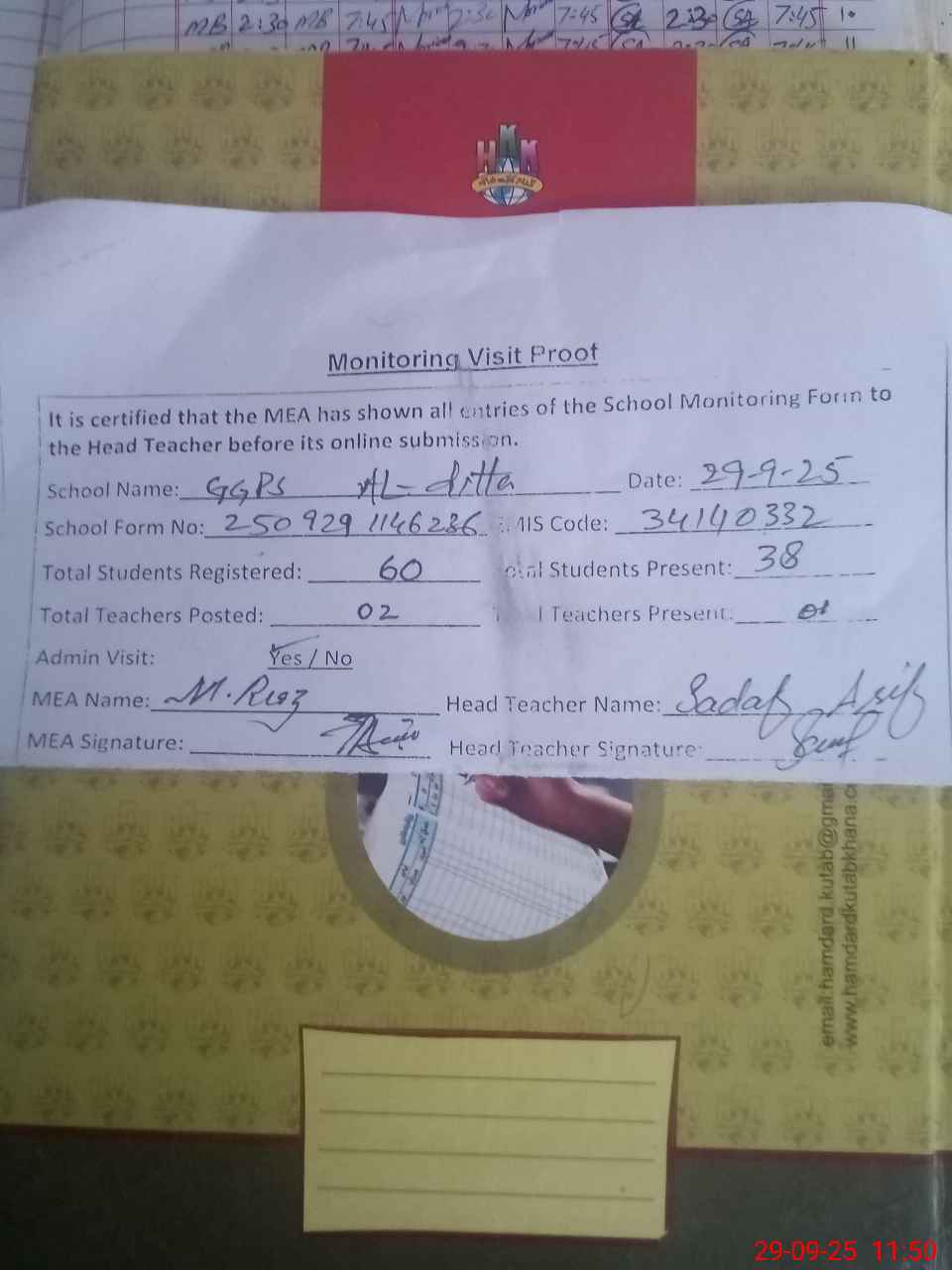 | EMIS Code: 34140332 | Name of School: GGPS AL-DITTA | |||
