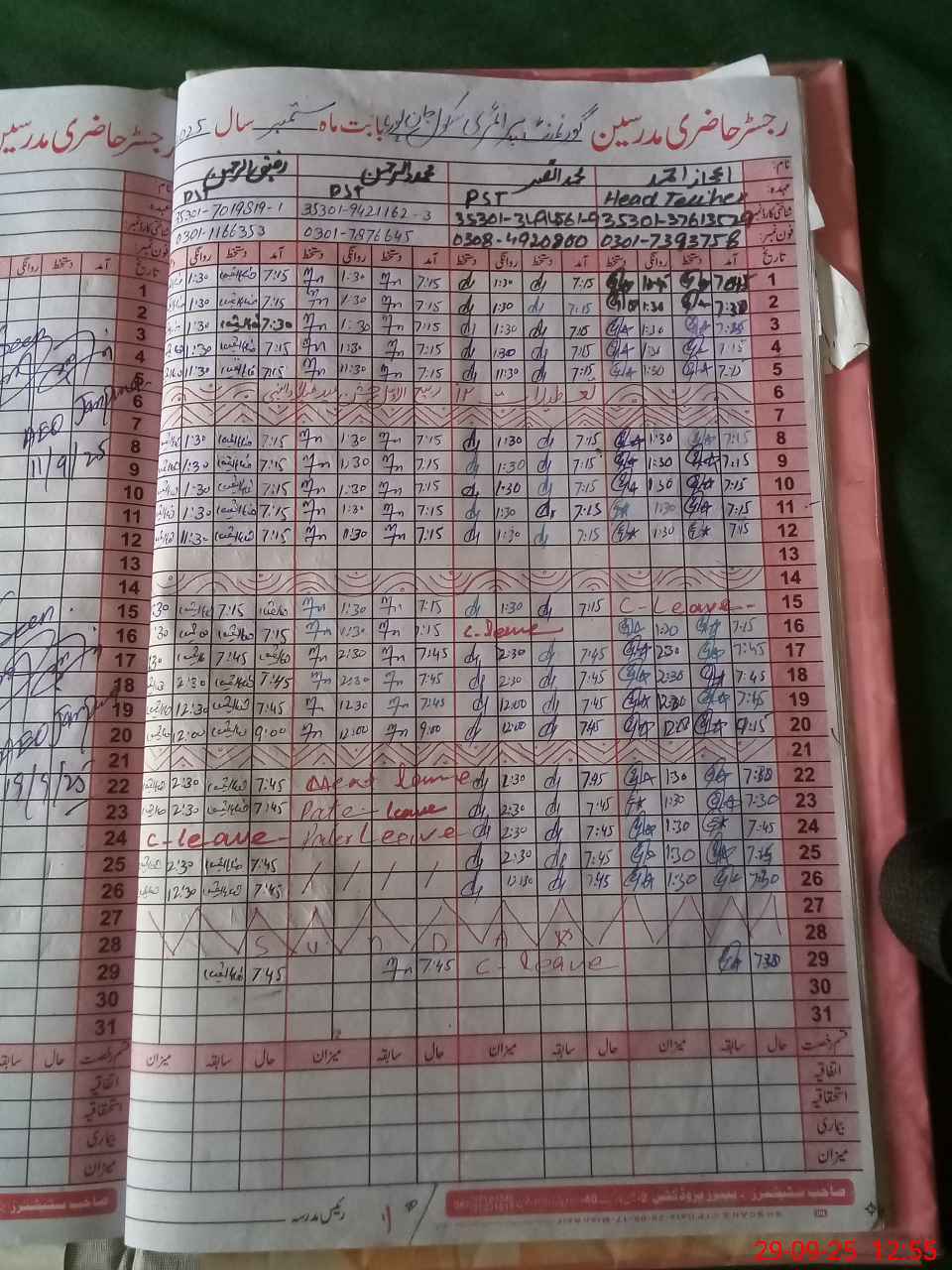 | CNIC | Full Name | Designation | R/C | Absence During Last Calender Month |