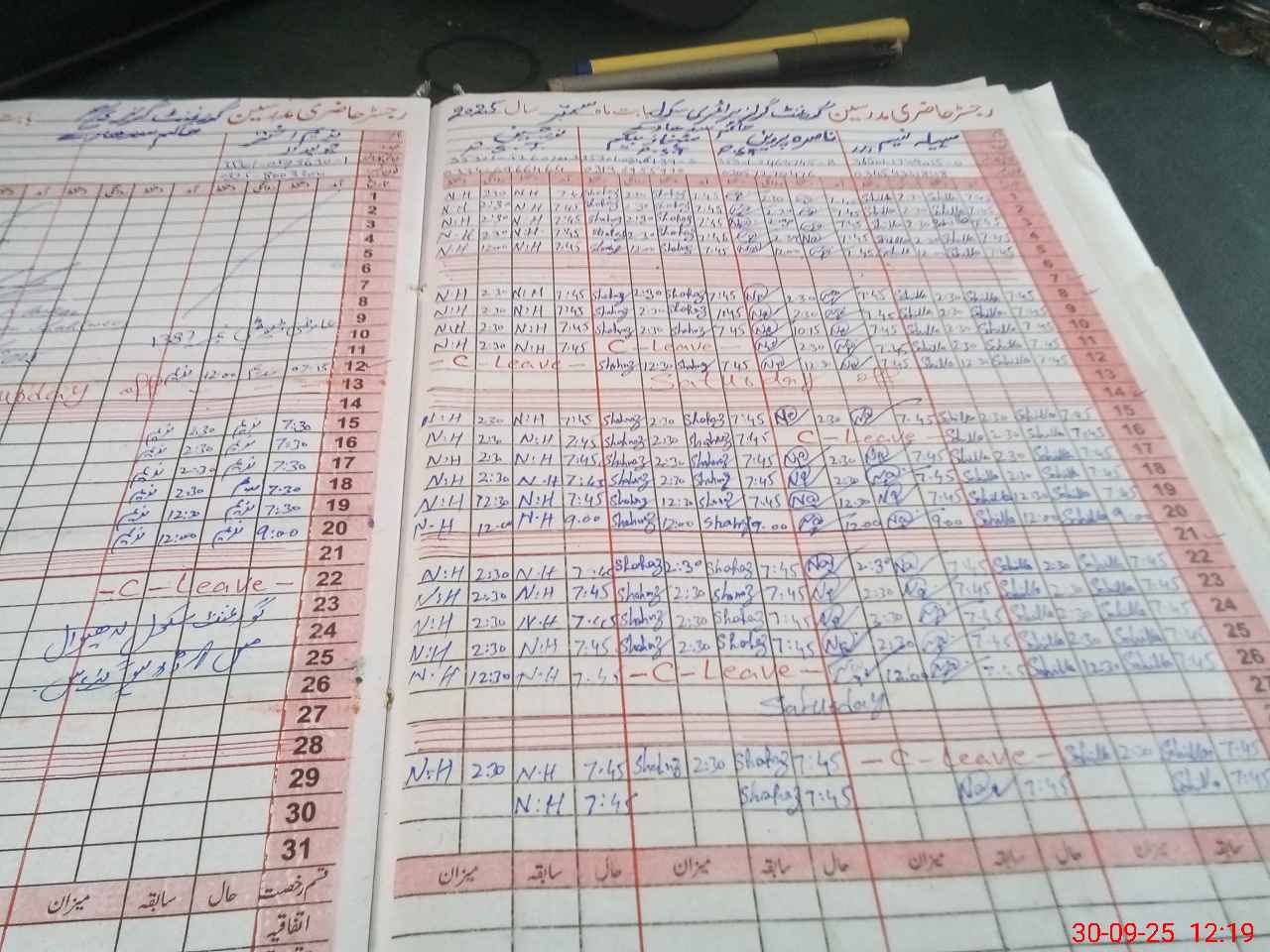 | CNIC | Full Name | Designation | R/C | Absence During Last Calender Month |