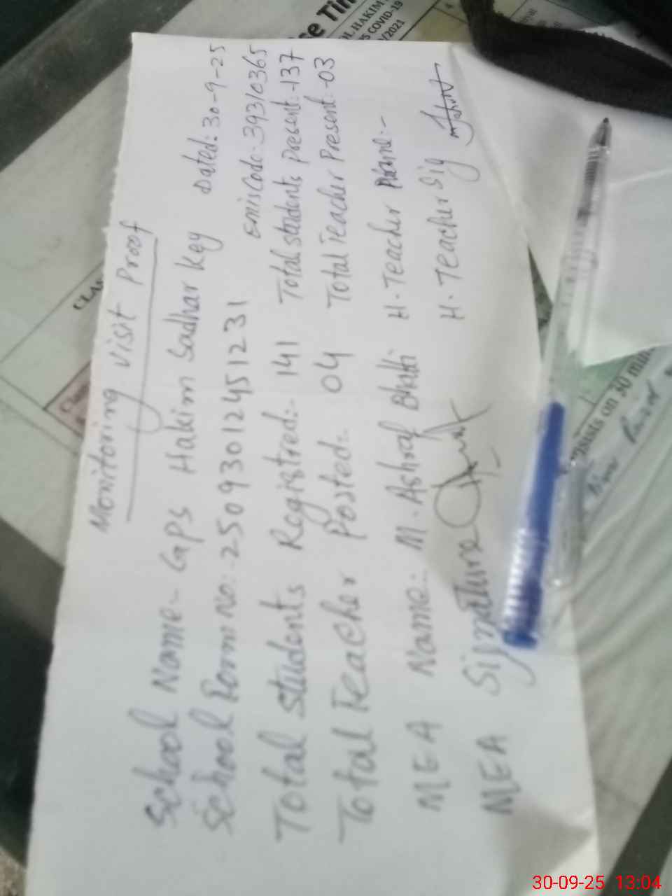 | EMIS Code: 39310365 | Name of School: GPS HAKAM SADHAR KEY | |||
