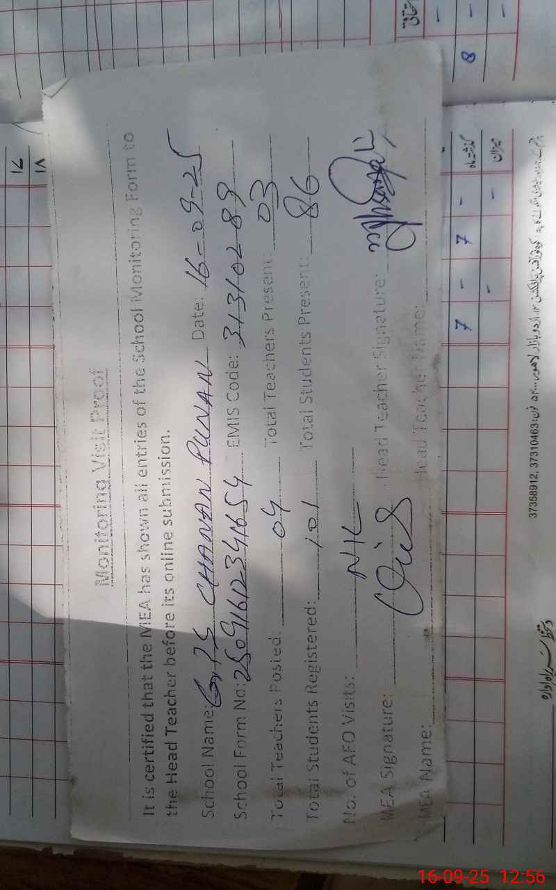 | Certified that this School was Inspected by the Undersigned MEA/DMO Today and the Information Stated Above is as Per Record. | |||||