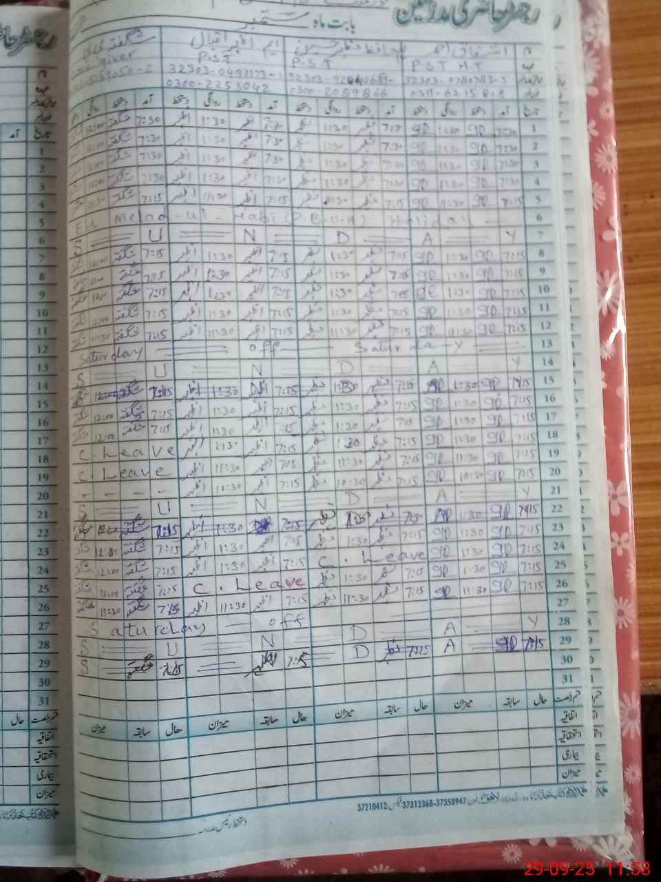 | CNIC | Full Name | Designation | R/C | Absence During Last Calender Month |