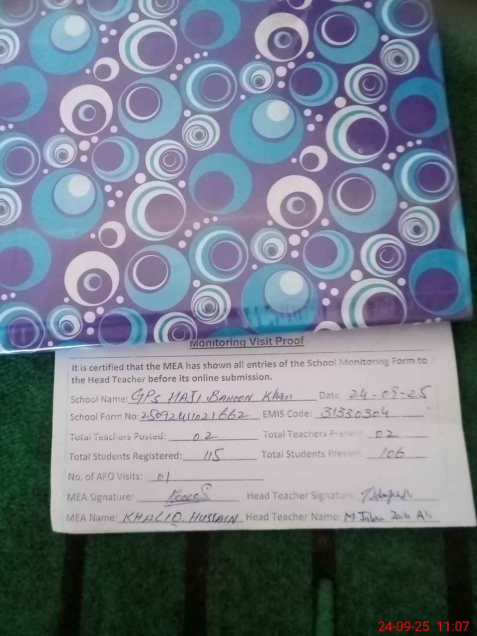 | EMIS Code: 31330304 | Name of School: GPS HAJI BANOON KHAN | |||