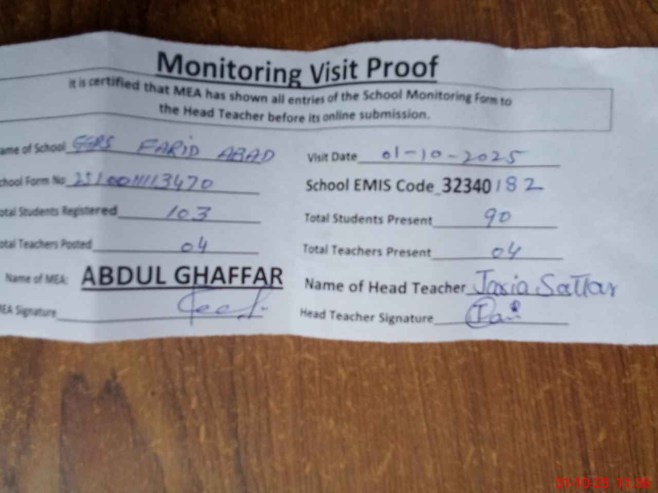 | EMIS Code: 32340182 | Name of School: GGPS FARID ABAD | |||