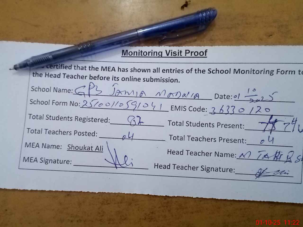 | Monitoring Date: 01-10-2025 | Start Time: 01-10-2025 10:59 AM | End Time: 01-10-2025 11:27 AM | Name of MEA: Sh**** Al**** | |