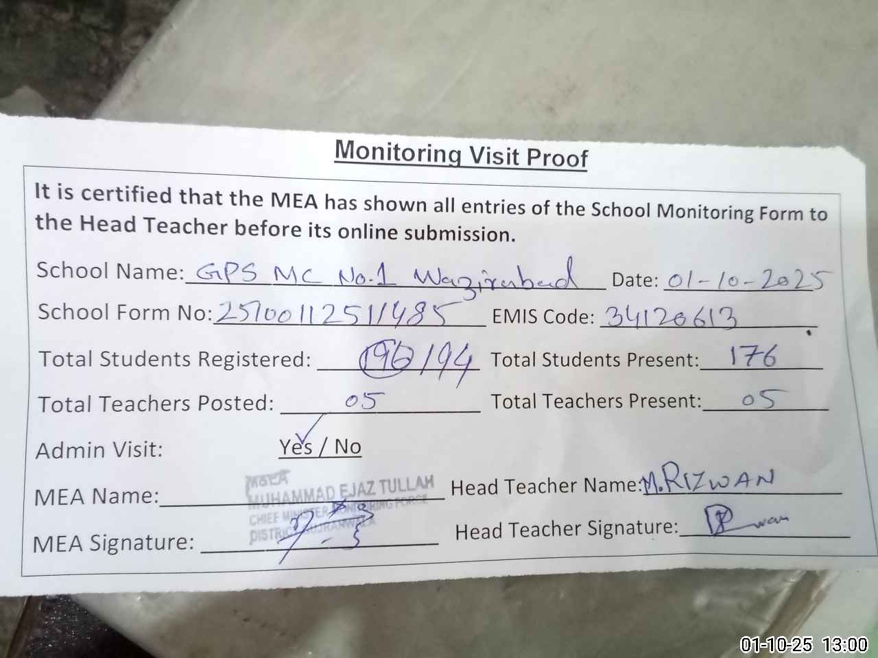 | EMIS Code: 34120613 | Name of School: GPS MC NO.04 WAZIRABAD | |||