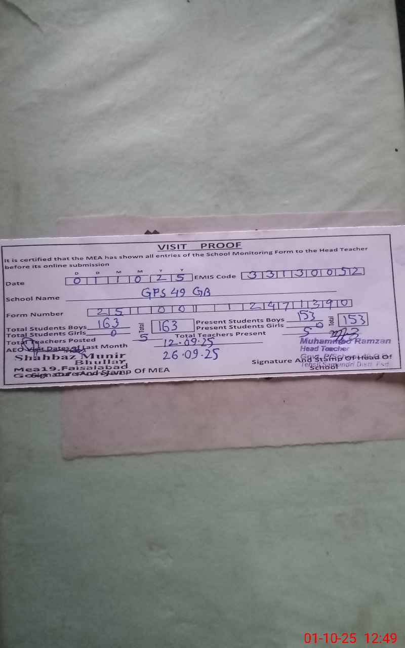 | EMIS Code: 33130052 | Name of School: GPS CHAK 49 GB SAMUNDRI | |||