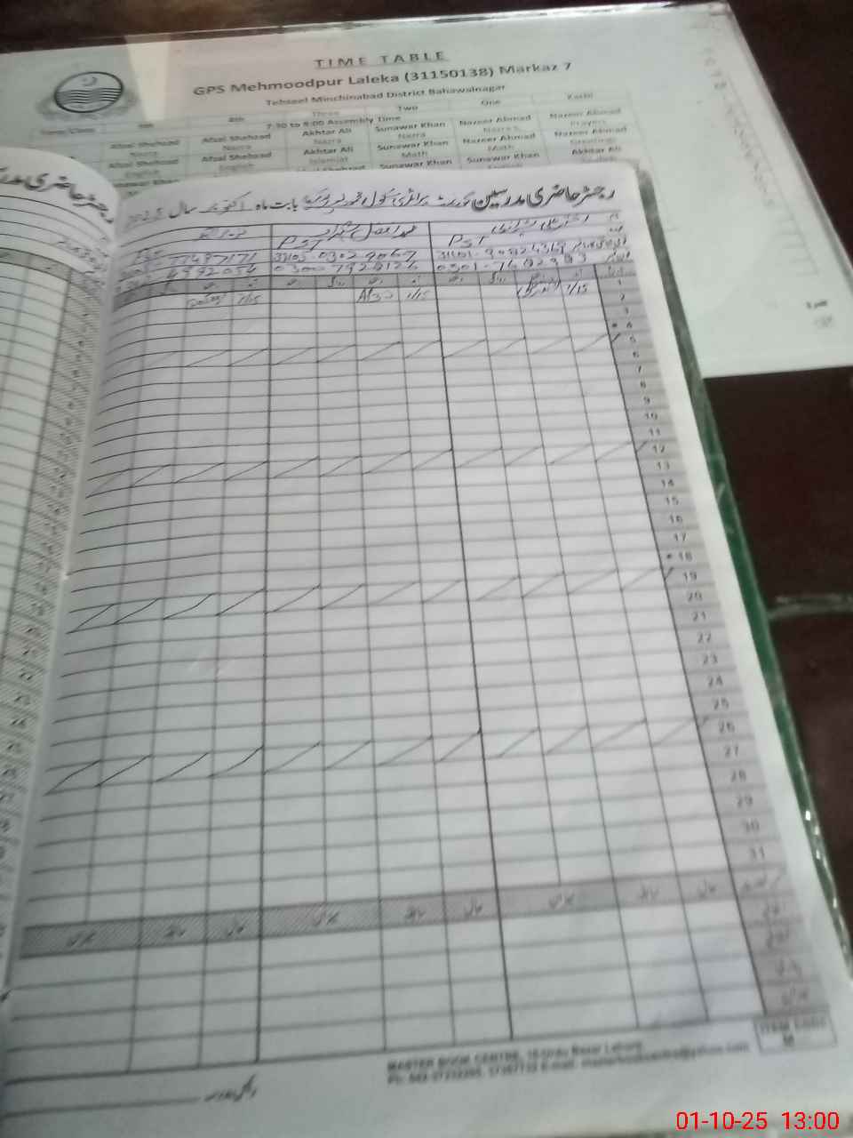 | Name: AK**** AL**** Designation: (School Headmaster's/Headmistress's) PST Phone/Cell Number: 03**** |