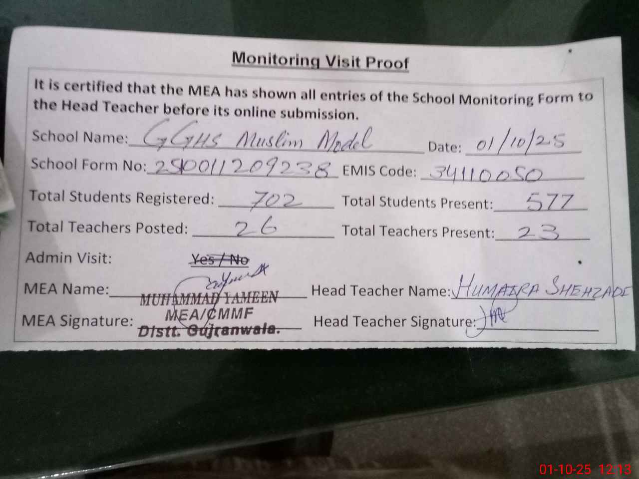 | EMIS Code: 34110050 | Name of School: GGHS MUSLIM MODEL | |||