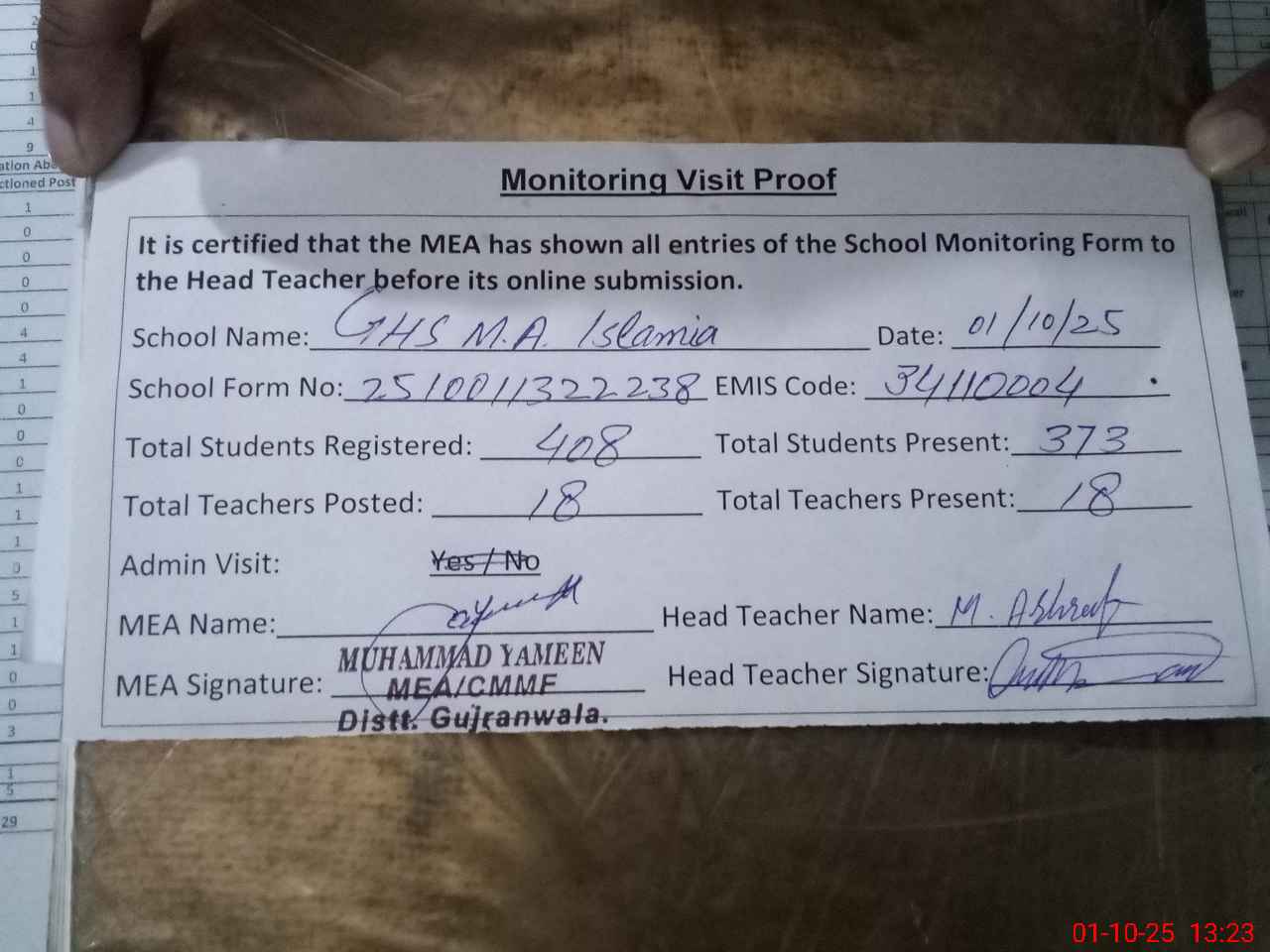 | EMIS Code: 34110004 | Name of School: GHS M.A. ISLAMIA | |||